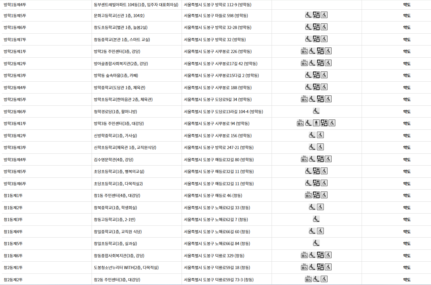 ㅁ 서울 도봉구 동별 사전투표소 현황